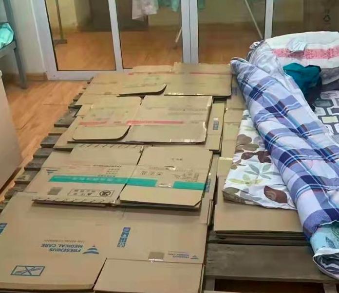 孙宇向21世纪经济报道记者介绍,在这封控的20多天里,他们工作人员只能住在临时搭的板子上。很多人从早上六点工作到晚上六点,甚至有人从早上六点到晚上十点半一直在工作。因为封控,绝大部分的中心保洁都无法出门,中心护士要在上班时承担以往两倍的工作,在班时为病人治疗,下班后还要承担保洁的工作。