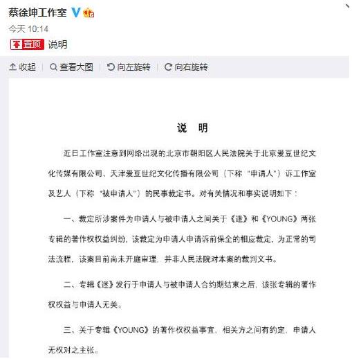 图片来源:蔡徐坤工作室官方微博说明