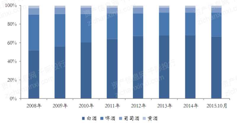 图 各种酒类在饮料酒中的占比