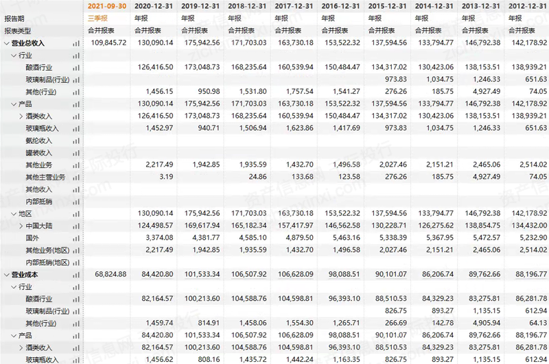 表 以古越龙山为例的主营结构分析