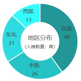 从空间分布上来看,东部地区聚集效应显著,占40席,中部地区、东北地区、西部地区位列其后。