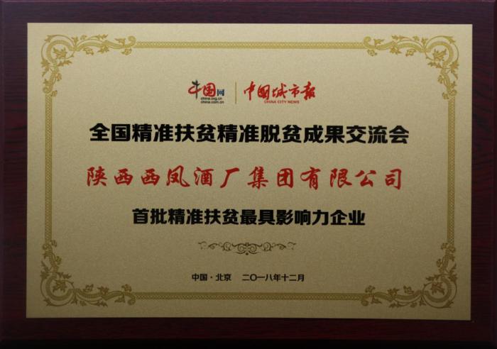 多年来,企业投资百余万元与全省二十多个村组开展了对口帮扶工作,通过产业扶贫模式,带动近万名农民脱贫致富,并荣获全国“首批精准扶贫最具影响力企业”称号。在企业对口扶贫县安康市石泉县,西凤集团帮助当地开发优势资源,培育主导产业,为推动当地农村脱贫工作做出了积极贡献。