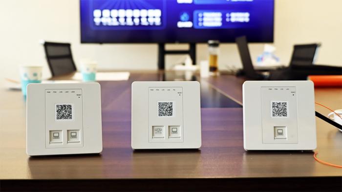 光口设备方面,一网万联全光纤网络解决方案配套研制的86面板型ONU产品,将信息网络拓扑结构简化为非常简洁的“星状扁平结构”,所有信息点,如宽带、电话、监控、AP、信息发布、门禁、DDC等均从机房“一纤到桌面”,用户像插线充电一样使用光纤。