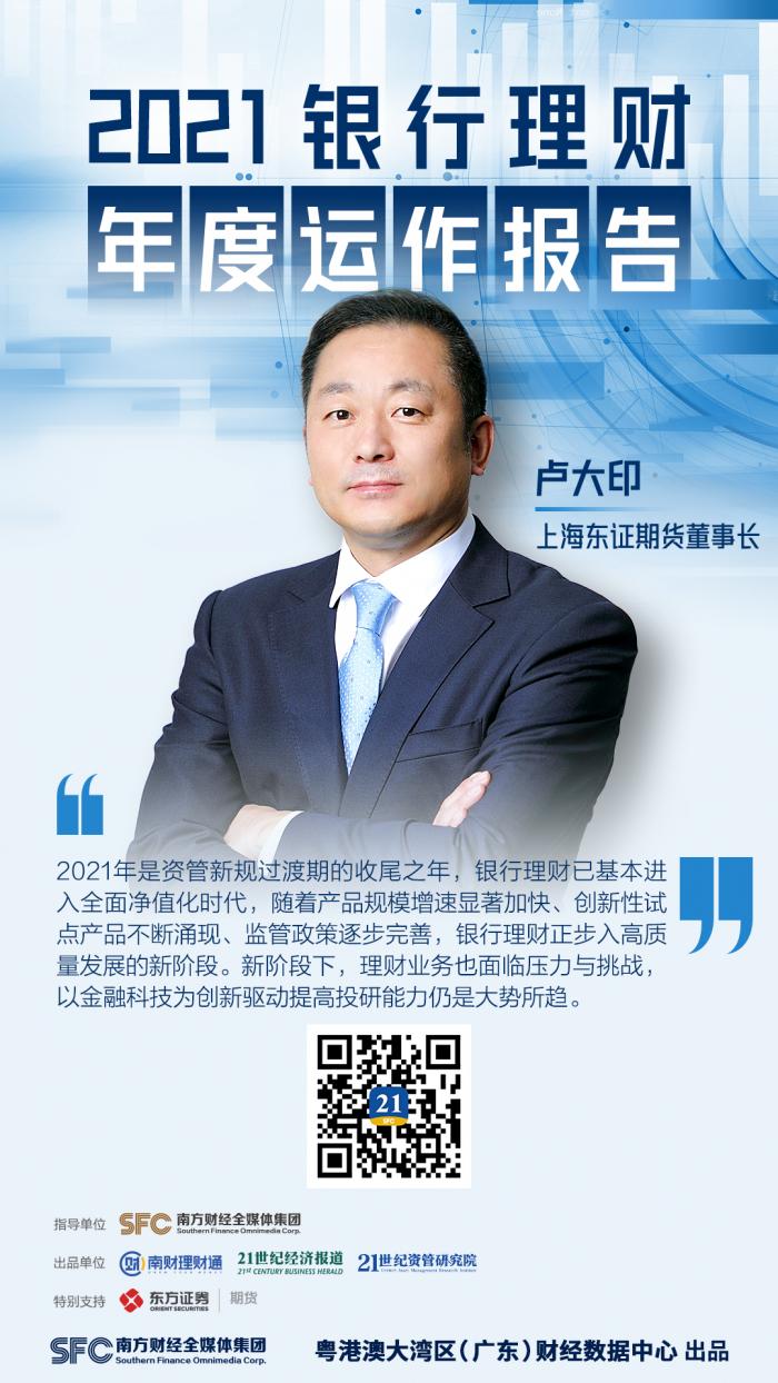 卢大印:2021年是“资管新规”过渡期的收尾之年,银行理财已基本进入全面净值化时代,随着产品规模增速显著加快、创新性试点产品不断涌现、监管政策逐步完善,银行理财正步入高质量发展的新阶段。在这过程中,期货公司积极参与,东证期货已实现银行理财子公司全覆盖,合作产品规模超过200亿元,助力银行理财业务快速转型。