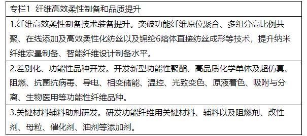 (一)强化政策支持引导。准确定位化纤工业鼓励和限制领域,加大对高性能纤维、生物基化学纤维、再生化学纤维及可降解纤维材料等领域支持力度。鼓励科研院所、高校、企业联合申报国家专项,加快技术研发和成果转化,支持企业建设国家级重点实验室等创新平台。