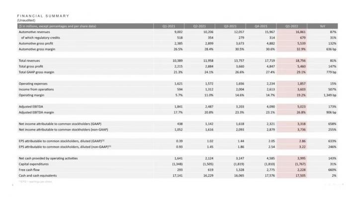 相比较而言,特斯拉的步伐就轻快得多。尽管同样面临原材料价格上涨,但在第一季度似乎还没有完全体现在报表上。