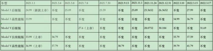 需要指出的是,尽管去年年底以来,特斯拉频繁涨价,但这部分涨价尚未体现在一季度的财报中,因为特斯拉的新车交付周期长达数月,单车价格上涨与去年的调价相关。实际上,去年11月以来,特斯拉就已经开始了一波调价,以中国市场为例,2021年最后两个月,特斯拉的主力车型Model 3、Model Y后驱版分别调价三次、两次,整体上调幅度分别高达2.98万元、2.58万元。
