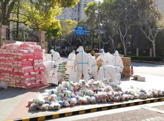 世茂服务从各城市公司招募过来的90多名志愿者,在各自公司里都是中层管理骨干,虽然都没有经历过如此境况,但热情高涨,说干就干。他们在社区里同住一个个小隔间、打地铺、吃盒饭。他们很清楚,这次到上海,他们打的是一场社区“复活”的硬仗,做的是最基层最累的工作:清运垃圾、搬运物资、社区消杀等。