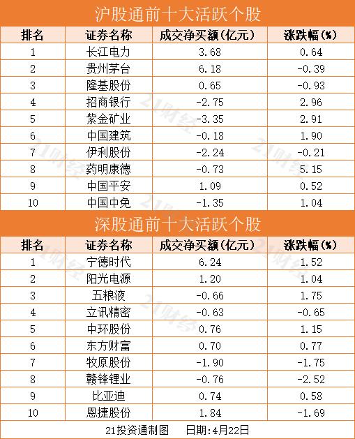 十大活跃个股方面,宁德时代、贵州茅台、长江电力净买入额位列前三,分别获净买入6.24亿元、6.18亿元、3.68亿元。值得注意的是,宁德时代获北向资金连续9日净买入,累计买入金额近30亿元。