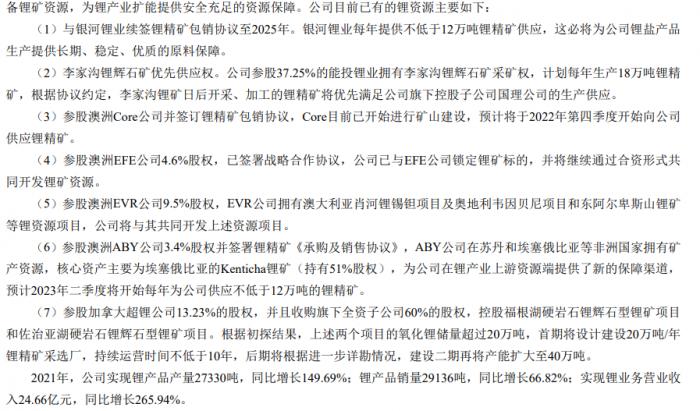 就年报明确给出的数据来看,公司合计锁定锂精矿供应大概在42万吨左右。