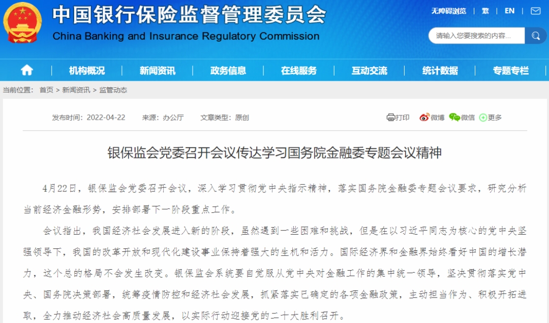 4月22日,央行、银保监会、证监会、国家外汇管理局分别召开会议,传达学习党中央、国务院关于做好当前经济社会工作的重要指示精神,贯彻落实国务院金融委专题会议部署要求。