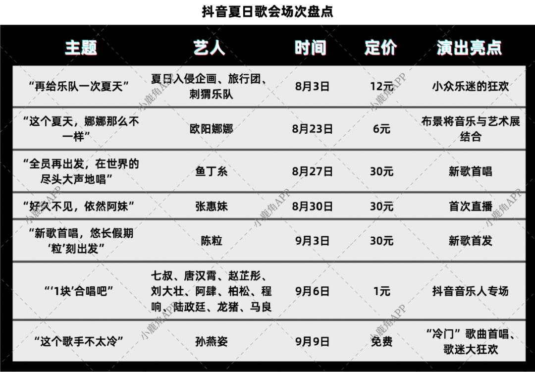 2021年8月,抖音“夏日歌会”活动如约而至,抖音官方邀约歌手陈粒、张惠妹等多位明星举行线上演唱会。与以往不同的是,这次歌会采用了收费直播方式。