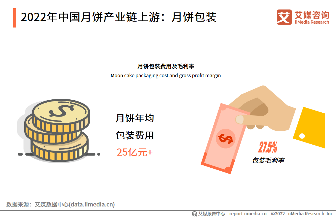除了基本食材外,包装是月饼产业上游的另一个重要环节。统计数据显示,中国月饼包装年均费用超过25亿元。从以包装为主营业务的上市公司公布数据看,月饼包装行业的毛利率高达27.5%。艾媒咨询分析师认为,随着月饼消费的不断升级,月饼相关厂商也更注重产品包装,这一产业的需求增多,发展前景良好。