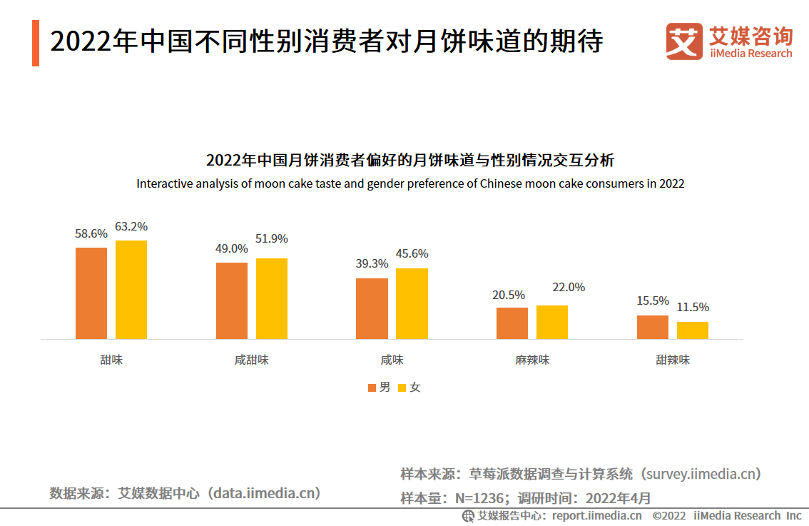 2022年中国不同性别消费者对月饼味道的期待
