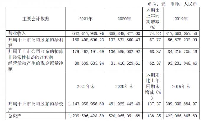 成效显著。2021年,华生科技营收6.43亿元,同比增长74.2%,远高于纺织制造行业平均20.3%的营业收入增长率;归母净利润1.8亿元,同比增长67.8%。