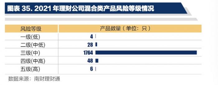 2021年末混合类产品存续总量达1850只,风险等级集中于三级