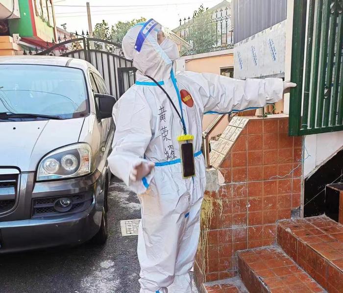 4月,上海的气温渐渐升高。黄荣耀再次套上不透气的白色防护服,从一名房产经纪人变成社区抗疫志愿者。