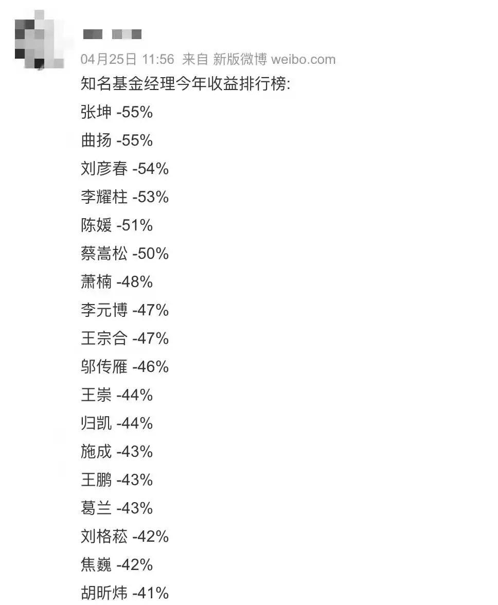网络上甚至流传着一份预测知名公募基金经理今年的收益排行榜:张坤-55%、曲扬-55%、刘彦春-54%、蔡嵩松-50%、葛兰-43%、刘格菘-42%……