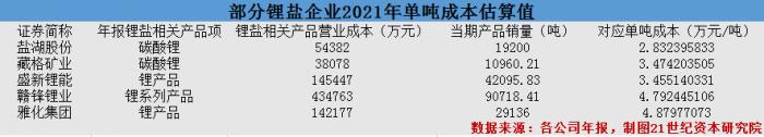 数据显示,2021年,藏格矿业碳酸锂营业成本为3.81亿元,当期销量为10960.21吨,以此折算每吨生产成本则在3.47万元/吨。