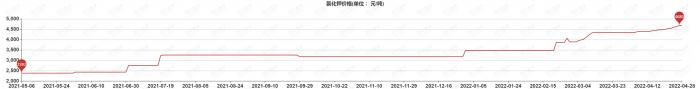 前期,国产市场成交价格基本在4600-4700元/吨,盐湖集团五月价格上调将对市场形成一定信心支撑,同时国产现货供应有限,市场成交价格仍有上行趋势,目前市场贸易商高端到站报价已有上调至4900-5000元/吨左右。