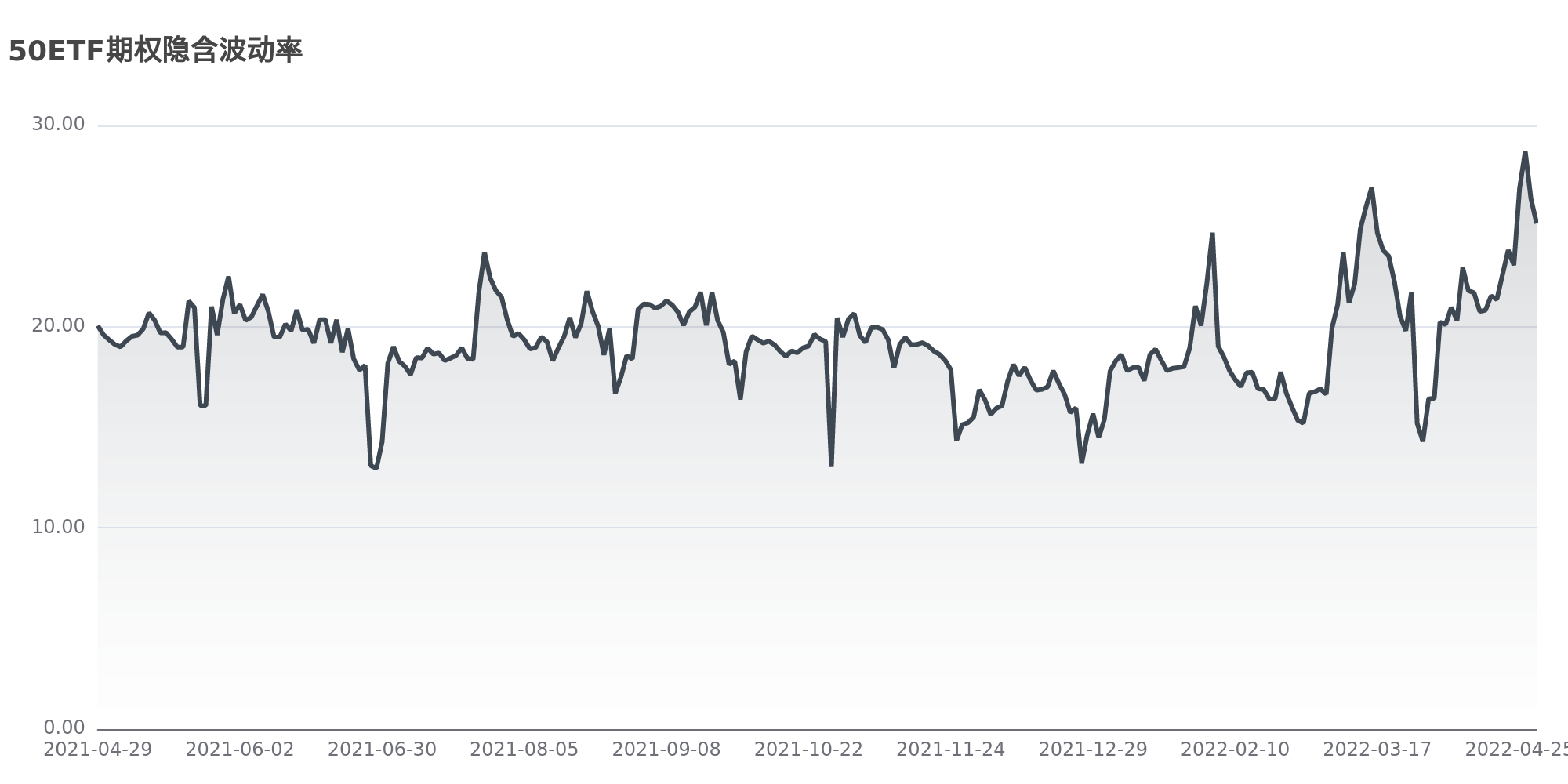 今日该指标值为25.13,目前该指标处于近一年较高区间,说明投资者认为未来市场波动处于较高水平。50ETF期权波动率(原中国波指iVIX,也称作恐慌指数),指数与上证指数存在负相关性,但不绝对。指数点位越高,代表投资者预期后市波动程度愈加激烈;指数点位越低,代表预期后市的走势愈加平稳。VIX在剧烈波动处有聚集的特征,而这些波动聚集处通常是在市场剧烈波动,或指数的低点和高位处。那么,在股指高位处的 VIX 聚拢高企意味着市场风险的集中;而股指快速下跌处的 VIX 高企意味着市场风险的释放。若VIX指数在股市快速下跌时持续的高企并突破极值,这可能预示市场的重大转折——风险已经释放到极致,股市将开始企稳并上扬。