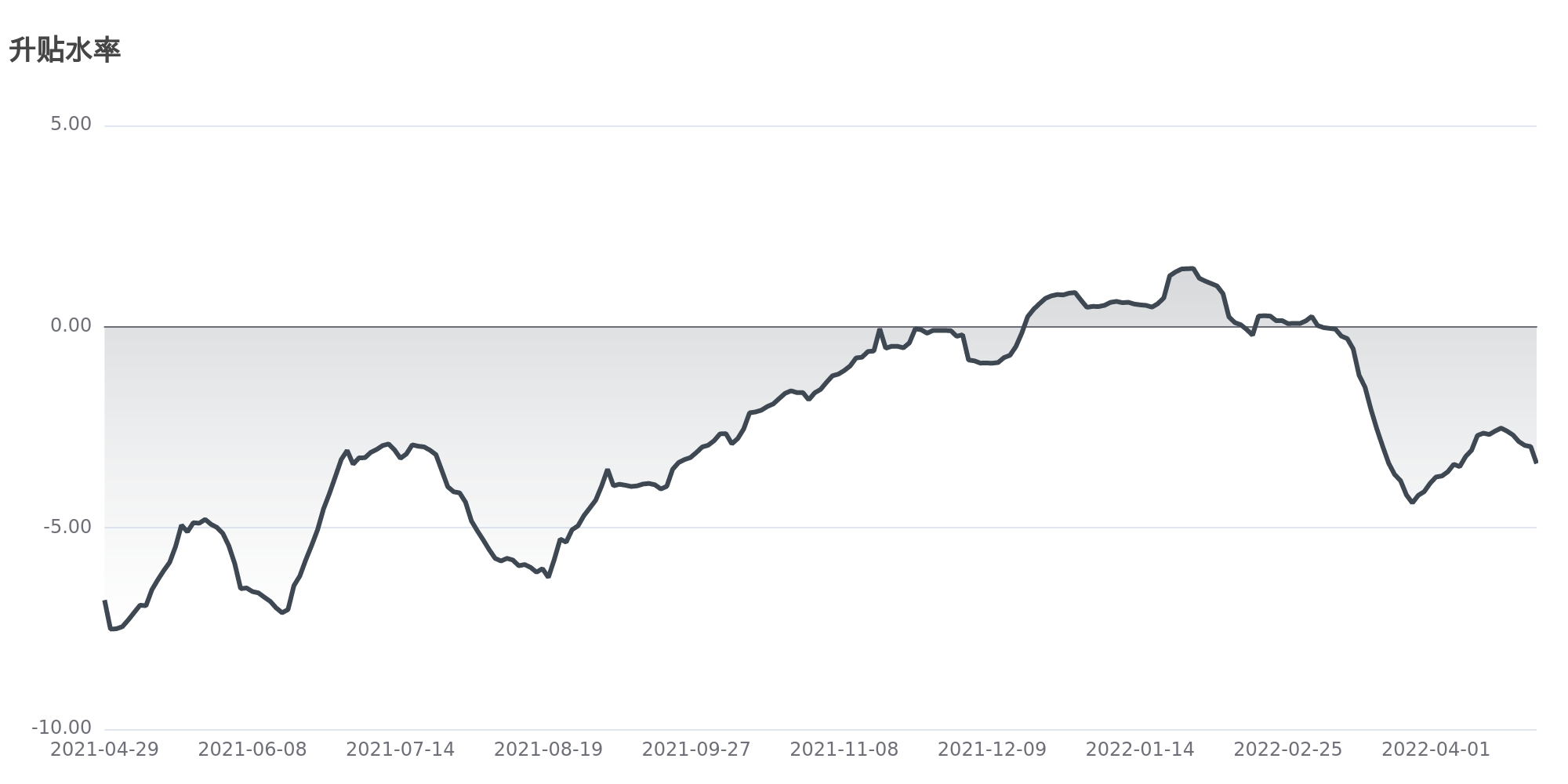 今日该指标值为-3.40%,目前该指标处于近一年中立区间,说明投资者对A股持中立情绪。反映期货市场投资者对市场的看法,该指标越高说明投资者认为当前市场较强,越低则说明认为市场相对较弱,因而与上证指数正相关。