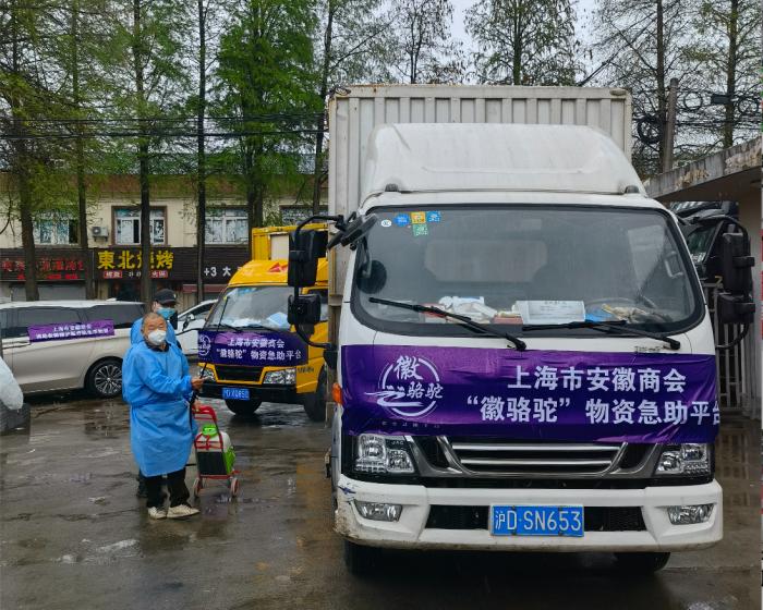4月9日起,上海市安徽商会紧急成立的“徽骆驼”物资急助支持平台和志愿队,搭起了两地的桥梁,400余位志愿者将来自安徽望江、太湖、潜山、滁州、铜陵、黄山、蚌埠、望江县、宣城市、合肥宿松商会、安徽省光彩事业促进会等的支援物资,送给最需要帮助的上海独居老人、工人、安徽老乡、残联、养老院等。