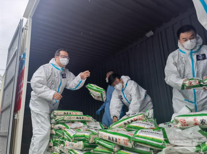 “优先给他们配送物资。”在收到七、八名工人因库存不够,缺少生活物资的消息后,上海市安徽商会会长洪清华第一时间带领刚紧急成立的物资急助志愿队“徽骆驼”向他们提供帮助,很快一批物资就送到了这群工人手中。