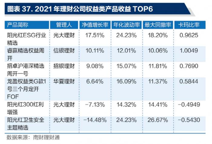 2021理财公司权益理财产品年度榜单:光大理财“阳光红ESG行业精选”夺冠