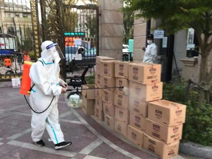 在防疫初期,他就组织了服务团队紧急封闭阳性楼栋的通道;派遣保安24小时驻场定时巡视检查,将所有所需物资直接交送到楼梯口;督促保洁人员按照国家规定进行消毒液配比、全面消杀。