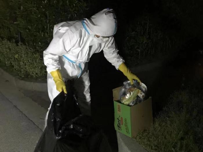 对于有阳性感染者的家庭,安排专人每天上门收取垃圾、运送物资,不断细化相关执行和管理工作,精准到不要直接接触消杀喷壶、防护服具体怎么穿脱、六步洗手法的流程等细节,逐个落实。