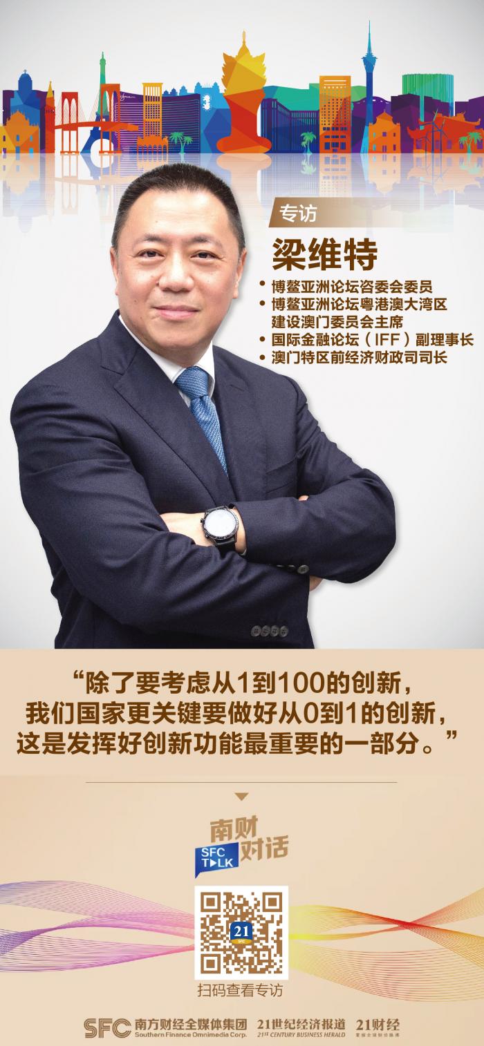 近日,博鳌亚洲论坛咨询委员会成员、国际金融论坛IFF副理事长、澳门特别行政区前经济财政司司长梁维特接受了南方财经全媒体记者专访。梁维特表示,澳门应该抓住博鳌亚洲论坛及横琴粤澳深度合作区(下简称“深合区”)创新发展试验田的机遇,充分了解何为“国家所需、澳门所长”,才能更好融入国家发展大局。
