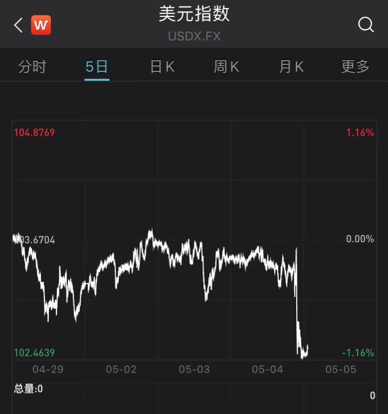 黄金大涨,美元指数跳水