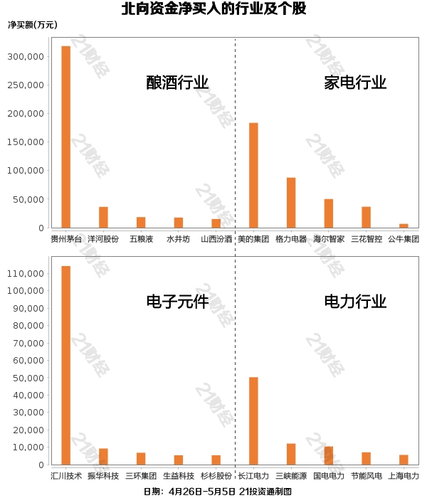 近5个交易日,北向资金增持酿酒行业超41亿元,贵州茅台等股获青睐(名单)