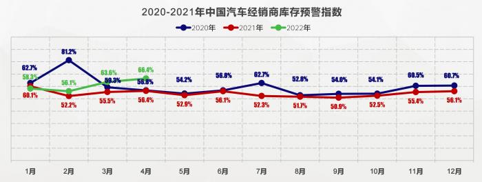 5月6日,中国汽车流通协会发布的最新一期“中国汽车经销商库存预警指数调查”VIA(Vehicle Inventory Alert Index)显示,2022年4月中国汽车经销商库存预警指数为66.4%,同比上升10个百分点,环比上升2.8个百分点,库存预警指数位于荣枯线之上,汽车流通行业处于不景气区间。疫情形势严峻导致汽车市场遇冷,新车供应危机与市场需求乏力共同作用车市,4月汽车市场状况不乐观。