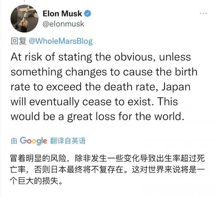 据环球网报道,近日,针对日本人口减少,马斯克评论称,“除非出现变化致出生率超过死亡率,否则日本最终会不复存在。”马斯克的言论很快在日本网络上引发广泛讨论,许多日本网民借机表达对日本社会和政府的不满,有人直接向马斯克要钱,还有人选择躺平:“我已经无所谓了,累了。”