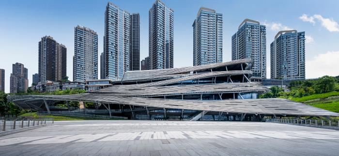 沿着南滨路行至弹子石广场,一个像草书“起”字形的建筑在蓝天白云下分外显眼,深蓝的色调、流线型的设计,让这座建筑充满了未来的科技感。重庆市规划展览馆由中国工程院院士崔愷牵头设计,建筑外观如流动的水墨般霸气飘逸,寓意起风景、起征程的奋起之意,展现了重庆“山城”与“江城”的特色,毫无疑问将成为重庆下一个地标建筑。