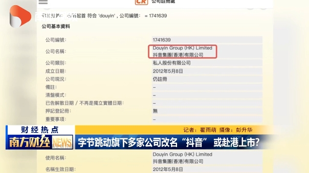 5月8日,字节跳动(香港)有限公司已更名为抖音集团(香港)有限公司,生效时间为2022年5月6日。那么,更名后的“抖音集团”究竟包含了字节跳动的哪些业务?而此前,曾传出字节跳动有意拆分抖音业务单独上市的传闻。此次更名,再度引发了这一猜测。