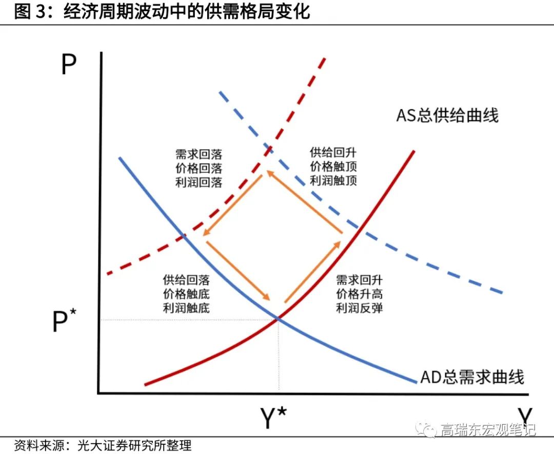 那么宏观环境的变化是如何传导到微观实体?我们以经济周期的复苏阶段为起点,来分析宏观经济复苏到微观实体的传导过程。当宏观经济复苏时,主要先行指标(经济景气度等)会有所反应,市场需求率先回暖,此时供给还未完全恢复,因而价格反弹;价格反弹带来盈利修复,企业可以充分利用现有产能补充库存,从而影响行业的景气度,最终反应到微观企业的财报和二级市场股价走势上去。