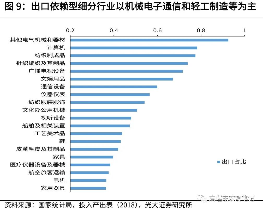 装备制造业的景气度主要由出口来驱动。根据投入产出表(2018),出口依赖型的行业中以装备制造业的行业居多,从装备制造业的营收增速与出口增速对比来看,二者走势基本一致。