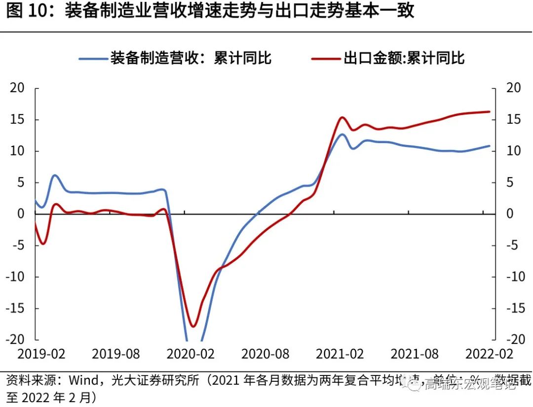 对于装备制造业,受海外供需缺口带动,装备制造业一直保持着相对较高的营收增速景气度,尤其表现在出口高技术链条,出口接连超预期也对此有所印证;