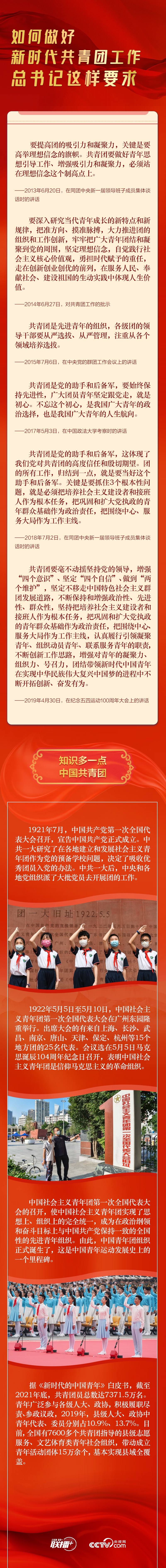 值此中国共产主义青年团成立100周年之际,央视网《联播+》特梳理总书记关于共青团工作的讲话要点,与您一起学习领会。