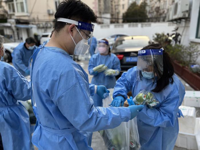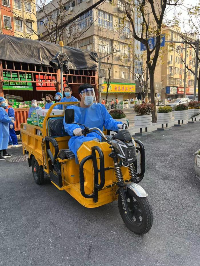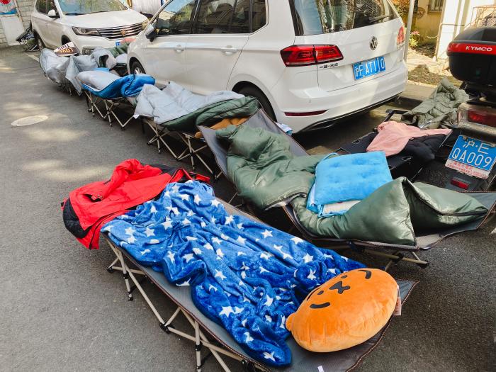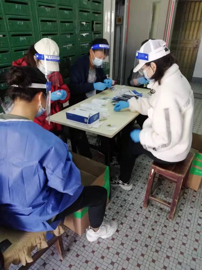“从小区封控以来,我们都是睡在居委会的行军床。吃饭有指定的送餐机构送来盒饭,但基本都赶不上饭点,早饭不吃、下午3点吃午饭,夜里11点吃晚饭。有时还要连夜支起小作坊,抗原检测试剂到我们这一盒是25人份,社区干部连夜要分好,然后早上6:00要发到每家每户,8:00出结果。没睡一会蔬菜到了,就要开始卖菜、发物资…….”赵子正如此描述着自己的日常。