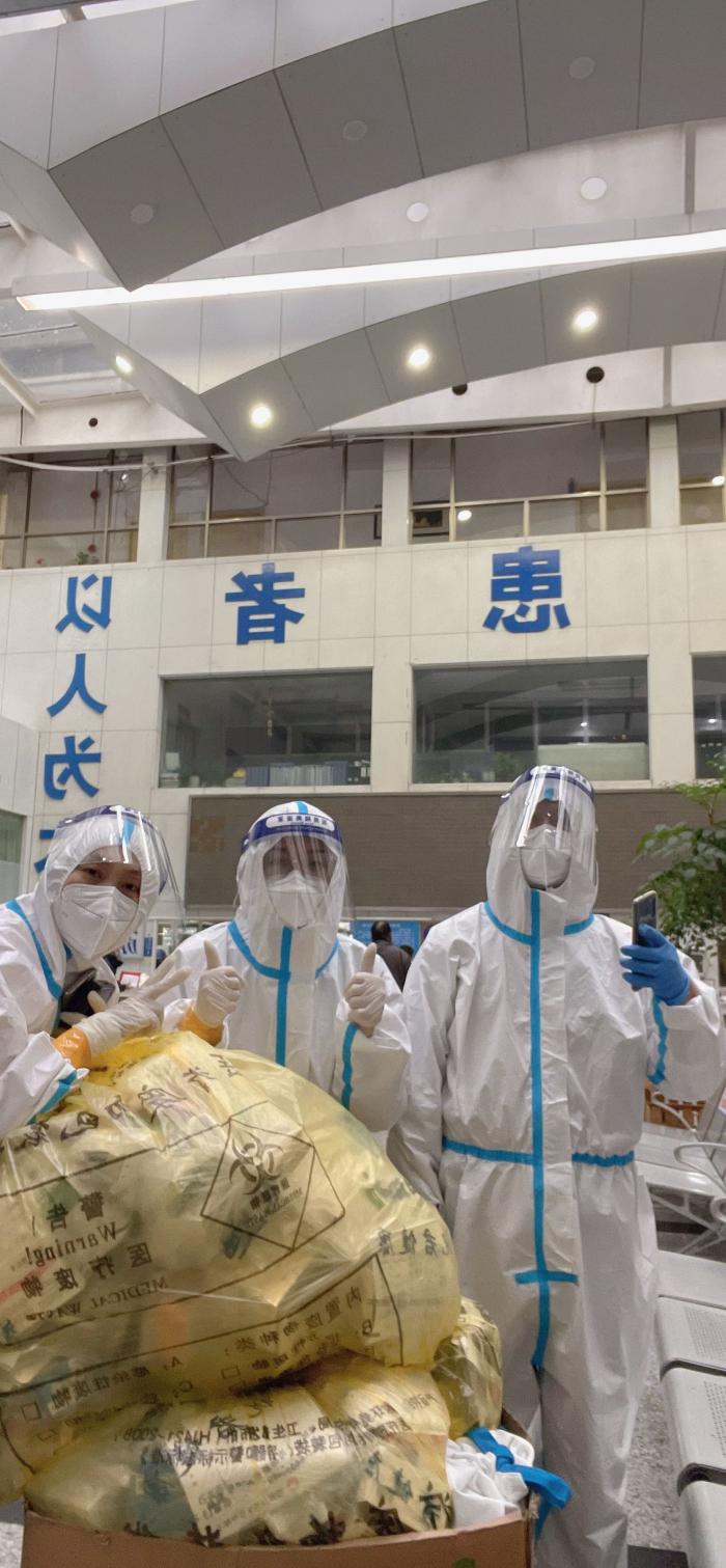 电话挂断后,赵子正又致电还在办公室熟睡的居委会主任徐薇娜,告诉她自己确诊了,并请她戴好手套,帮忙把他的行李简单打包、消毒后拿到铁门外。此时,居委干部们都醒了,隔着铁门,很多女同事都哭了,拿给赵子正的行李里装满了吃住用品。