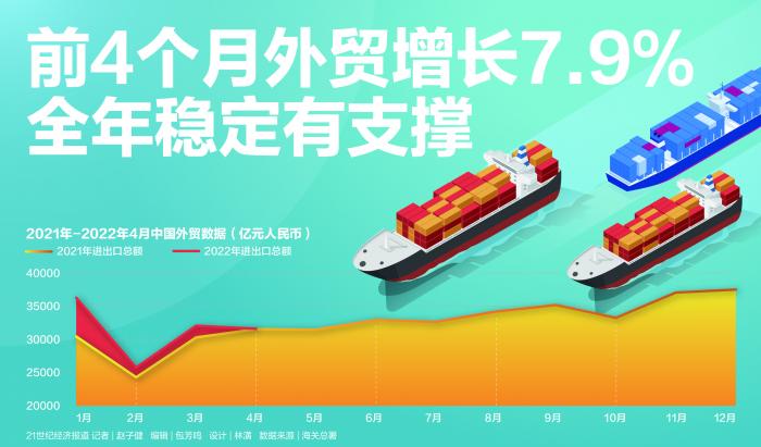 海关总署统计分析司司长李魁文指出,我国实现全年外贸保稳提质目标仍然有较好支撑。在外部环境更趋复杂严峻的形势下,前4个月我国外贸进出口仍然保持了增长,有进出口实绩的外贸企业数量同比增加4.7%。这充分体现了我国经济韧性强、潜力足、回旋余地广、长期向好的基本面不会改变的特点。