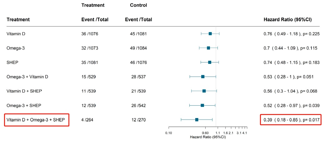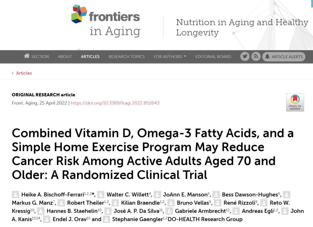 研究人员表示,这个随机对照试验表明,每天补充维生素D、Omega-3脂肪酸,并配合简单的力量锻炼,可以降低70岁及以上人群的患癌风险。未来的研究应验证联合治疗在预防癌症方面的益处,还应扩展到超过三年时间的更长随访时间。