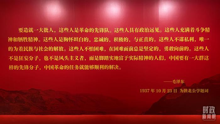 “要造就一大批人,这些人是革命的先锋队。这些人具有政治远见。这些人充满着斗争精神和牺牲精神。这些人是胸怀坦白的,忠诚的,积极的,与正直的。这些人不谋私利,唯一的为着民族与社会的解放。这些人不怕困难,在困难面前总是坚定的,勇敢向前的。这些人不是狂妄分子,也不是风头主义者,而是脚踏实地富于实际精神的人们。中国要有一大群这样的先锋分子,中国革命的任务就能够顺利的解决。”