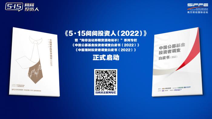 21世纪经济报道 记者孙煜 北京报道 5月15日,在中国证券投资基金业协会、南方财经全媒体集团指导,上海证监局等单位特别支持下,21世纪经济报道以“5•15全国投资者保护宣传日”为契机,正式启动“515问问投资人(2022)”大型防非投教项目。