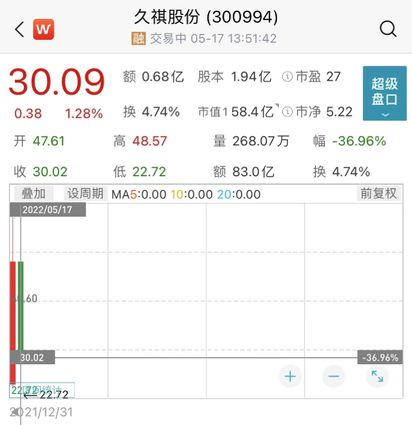 今年以来,久祺股份股价累计跌了36%。
