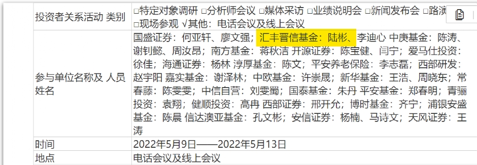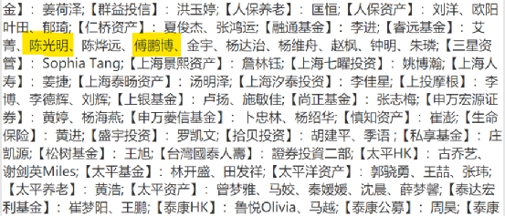 近期,多家基金公司组团参与了调研,兴证全球基金谢治宇,景顺长城基金刘彦春,睿远基金陈光明、傅鹏博、赵枫,汇添富基金劳杰男,富国基金朱少醒等知名投资人出现在调研名单中。